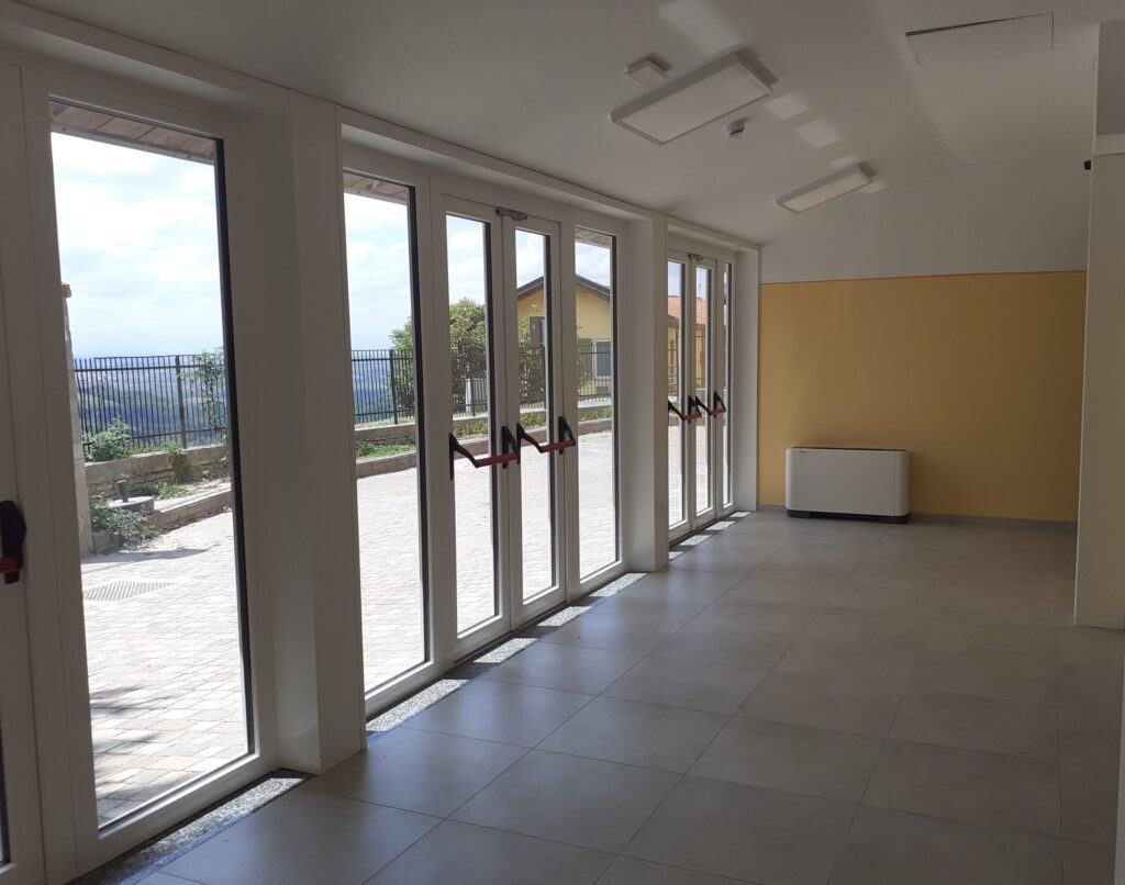 Sono stati realizzati una saletta riunioni per incontri, colloqui e momenti di lavoro in équipe, un locale dedicato al personale più adatto alle esigenze organizzative e una zona verandata, utilizzabile come estensione degli spazi interni. Questi nuovi ambienti sono stati pavimentati, dotati di controsoffitto e grandi vetrate, in modo da risultare luminosi, aperti verso l’esterno e confortevoli in tutte le stagioni.